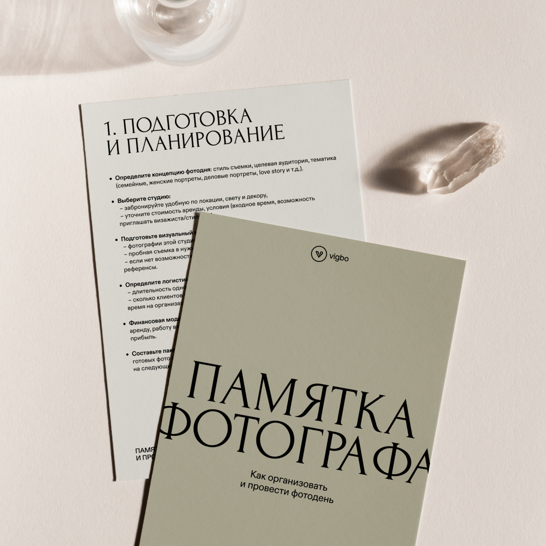 Фотодень — это не просто серия мини-сессий, а целый проект, который требует и маркетинга, и организации. Если продумать всё заранее, то это станет регулярным источником дохода и постоянного потока клиентов. Эта памятка — как пошаговый чек-лист для фотографа: от идеи до готовых снимков. Всё расписано просто и по делу, чтобы фотодень прошёл без хаоса и оставил довольными и вас, и клиентов. Vigbo — первый сервис для фотографов на русскоязычном рынке, с 2011 года упрощаем работу мастеров и помогаем привлекать клиентов. Наша миссия — больше счастливых фотографов и красивых историй. Бесплатные галереи для передачи съемок, онлайн ретушь и сайт-портфолио для фотографов – всё в одном месте! Пробуйте бесплатно >> Если материал вам был полезен, просто кликните на 👍 и делитесь с друзьями ссылкой ❤
