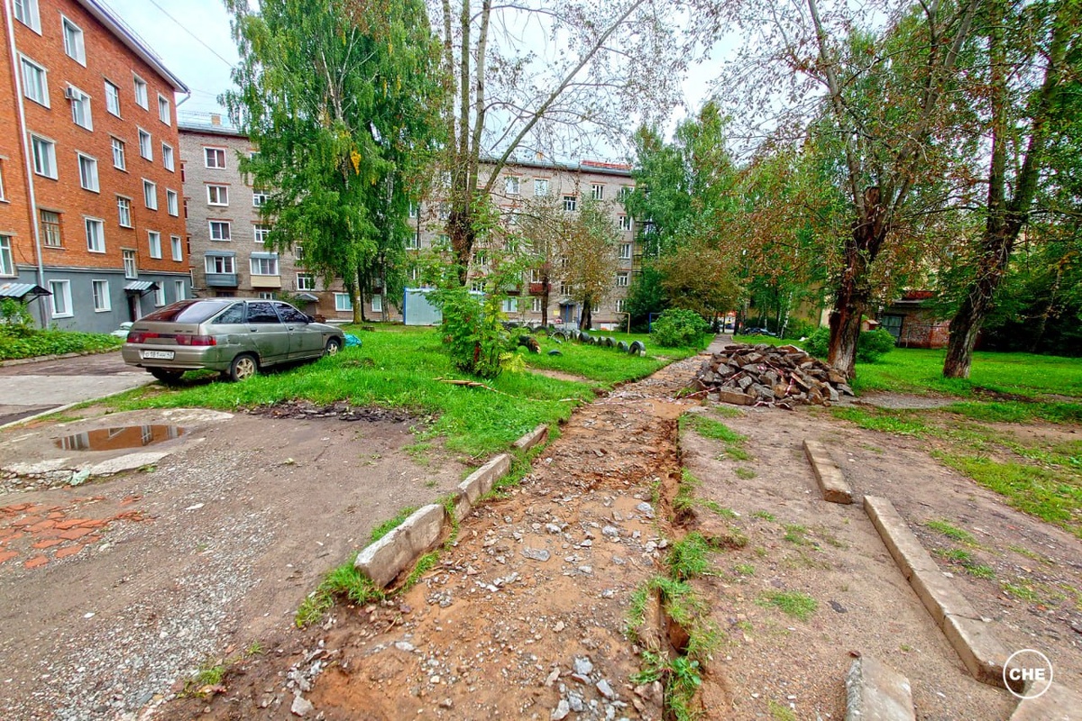 В Чепецке приводят в порядок небольшой тротуар в старой части города. Это около пятидесяти метров дорожки, которая идёт по диагонали между домом № 52 на улице Ленина и домом № 14 на проспекте Кирова. Для горожан это способ немного срезать путь к центральной почте.