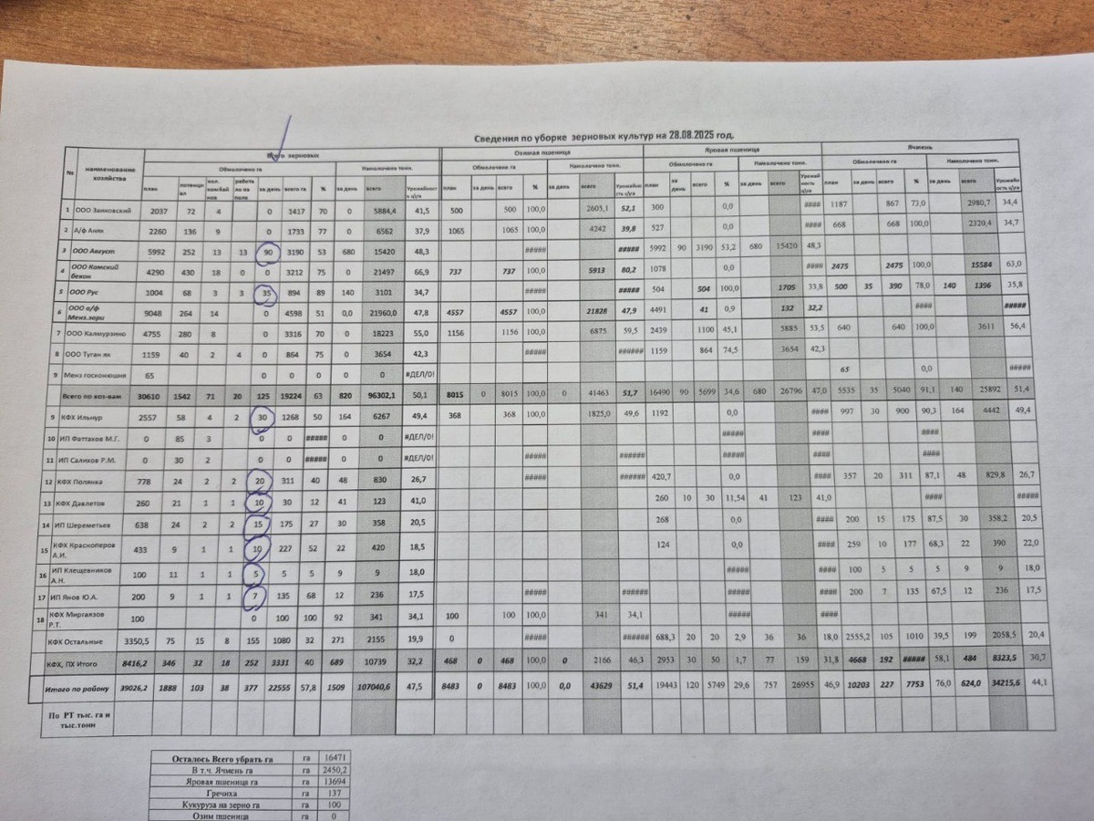 Мензелинские земледельцы за один день смогли убрать урожай только на 377 гектарах