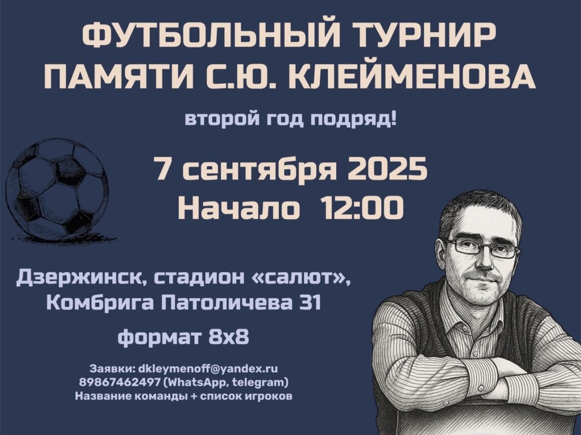 Сергей Юрьевич был добрым и отзывчивым человеком, готовым всегда прийти на помощь. Он поддерживал все спортивные начинания нашего города на протяжении всей своей жизни и искренне переживал за молодых ребят, стремящихся вести здоровый образ жизни! В этом году футбольный турнир памяти Сергея Юрьевича пройдет во второй раз. Он состоится 7 сентября в 12:00 на стадионе «Салют». Любой желающий может заявить свою команду и побороться на поле за призы. Турнир пройдет в формате 8х8. Каждая игра в два тайма по 15 минут. Всего в турнире примут участие 8 команд. В заявке может быть до 15 игроков. Участие в турнире бесплатное. Все подробности по телефону: +7-986-746-24-97 (Дмитрий).