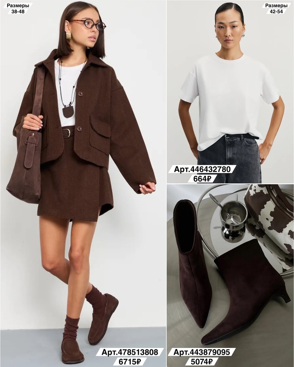 Эта подборка — как хороший плейлист: включили и сразу красиво. Три готовые формулы (шоколадный коллеж, изумрудный power-look и парижский городской) и каждая вещь разобрана отдельно: посадка, фактура, с чем носить и маленький лайфхак стилиста. Идём строго по порядку артикулов с фото.