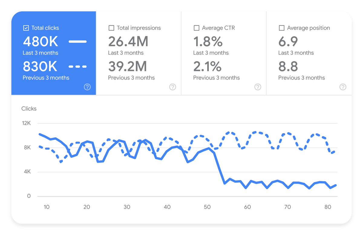 Резкая просадка видимости в Google Search Console в сравнении с предыдущим периодом