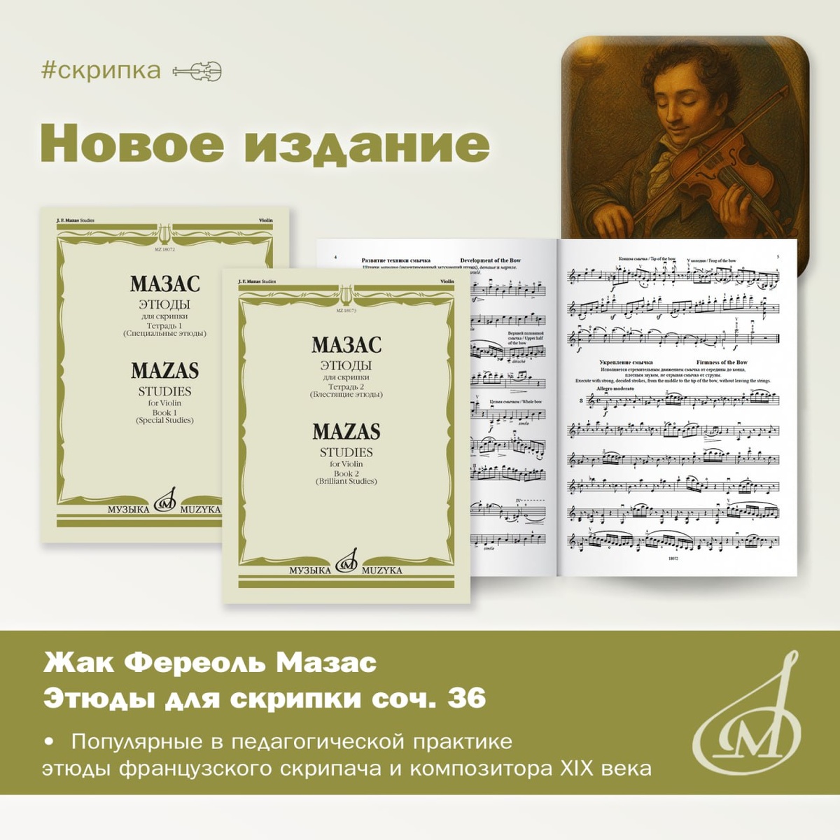 🎻 Новое издание: Ж. Ф. Мазас. Этюды для скрипки соч. 36. В двух тетрадях. Продолжаем пополнять наш скрипичный каталог! Рассказываем о вновь изданных знаменитых этюдах французского скрипача и педагога Ж. Ф. Мазаса. 🔵Жак Ферео́ль Маза́с (1782–1849) — скрипач и композитор, развивший исполнительские традиции, заложенные основателем современной скрипичной школы игры — Джованни Баттиста Виотти. Мазас перенял их от его ученика, своего педагога в Парижской консерватории Пьера Байо. В свою очередь, все умения он передал ученикам, будучи директором консерватории в Камбре в 1837–1841 гг., а также в своей «Школе игры на скрипке», которую на русский язык перевёл знаменитый чешско-русский скрипач, профессор Московской консерватории Иван Войтехович Гржимали (1844–1915). Как композитор, Мазас создал два скрипичных концерта, несколько опер, струнных квартетов и трио, ряд пьес и этюдов. 🔵Две тетради этюдов (тетрадь I, тетрадь II) давно завоевали признание и широко используются в педагогической пра