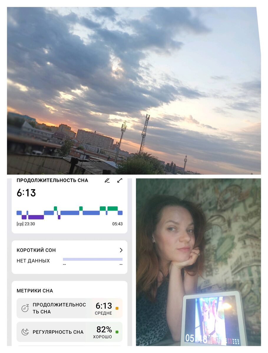 Сегодня утро началось не слишком рано, но уже по графику — в 5:55. Это значит, что я села в спокойном ритме, чтобы начать день. Вижу, как небо медленно расплывается в рассветных сумерках — это невероятно красиво. Такое утро не может не вызвать улыбку на лице, особенно после трёх дней подряд просадки по подъёму. Маленький успех даёт силы и поднимает настроение, напоминая, что завтра всё получится лучше. В этот момент я чувствую, как внутри просыпается надежда и мотивация двигаться дальше.
