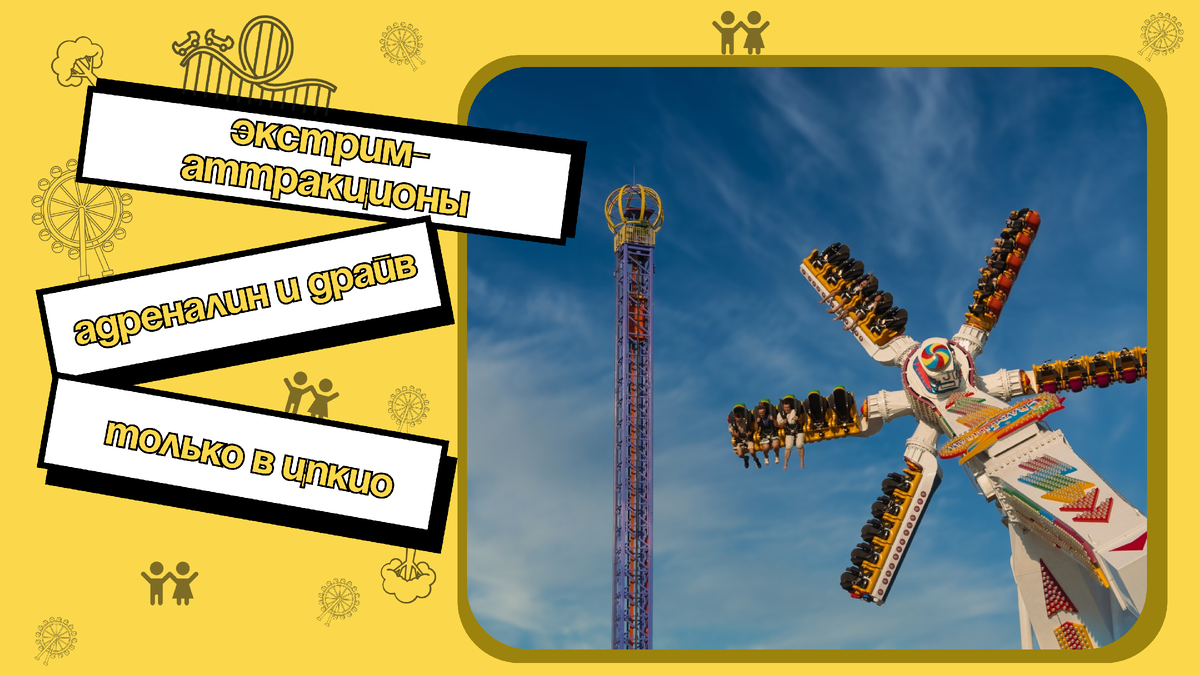 «Мельница» – объект, поднимающий гостей на высоту 17,5 метров и вращающий по часовой стрелке. В это же время закр