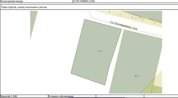 Название: Земельный участок, кадастровый номер 52:58:1000001:2104; площадью 999 кв.м.; расположенный по адресу: Российская Федерация