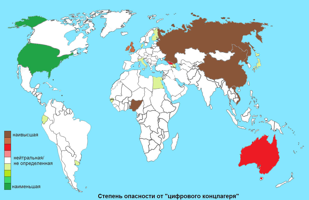 Но это - не единственный критерий. Вьетнам, например, закрашен за введение обязательной поголовной биометрии - тоже важная часть "цифрового концлагеря".