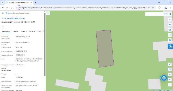 Название: Земельный участок, площадью 1250 кв.м, кадастровый номер 43:44:310117:74, категория земель: земли населенных пунктов, вид разрешенного использования: для производственных целей, расположенный по адресу: Кировская область, Слободской район, г. Слободской, ул. Первомайская. Постройки на земельном участке отсутствуют. Вид права – собственность. Обременение – аресты. Собственник – Тарасов Е.В. (уведомление № 1536 от 23.06.2025). Канал: Госземля Кировская область Область: обл Кировская Слободской район Район: г. Слободской Населенный пункт: ул. Первомайская Локация: Смотреть на карте ВРИ: Производственная деятельность Кадастровый номер: 43:44:310117:74 Кадастровая стоимость: 220278.58 Вид сделки: Продажа Площадь: 1250 м² Начальная цена: 210970.00 руб. Дата завершения: 29.09.2025 Подробнее: ГИС ТОРГИ #госземля #земляотгосударства #земля #земельныйучасток #земельныеторги #торги #аукцион #продажаземли #продажа #кировскаяобласть