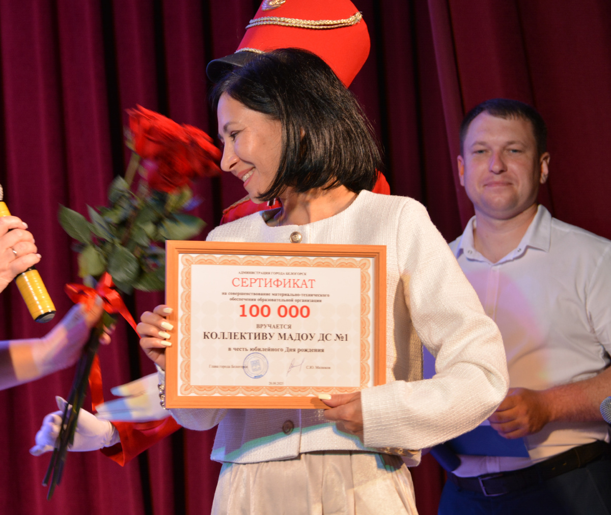 Сертификат на 100 тысяч рублей от имени главы Белогорска вручили детскому саду №1 в честь юбилея