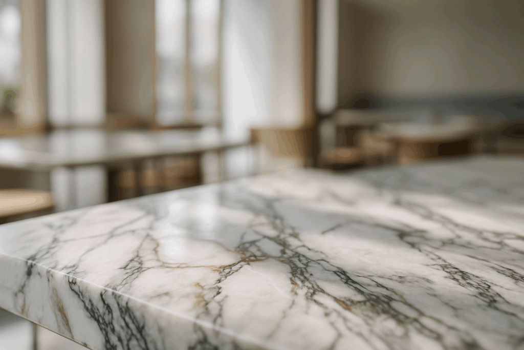Выбор между натуральным мрамором и искусственным камнем для кафе — это баланс между статусностью и практичностью. Мрамор выглядит роскошнее, но требует особого ухода. Кориан практичнее в эксплуатации, но имеет свои ограничения.