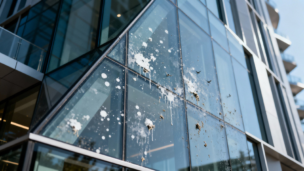 Удаление следов птиц с фасадного остекления: технология профессиональной очистки