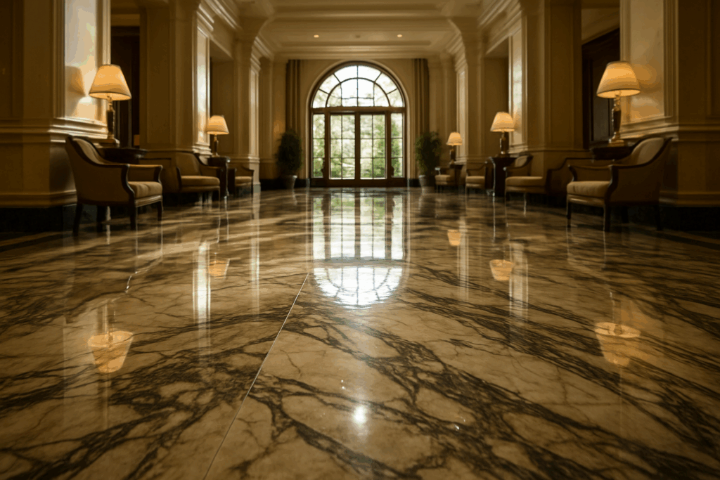 Измеримый результат: после профессиональной полировки светоотражающая способность мрамора восстанавливается до 95-98% от показателей нового камня.