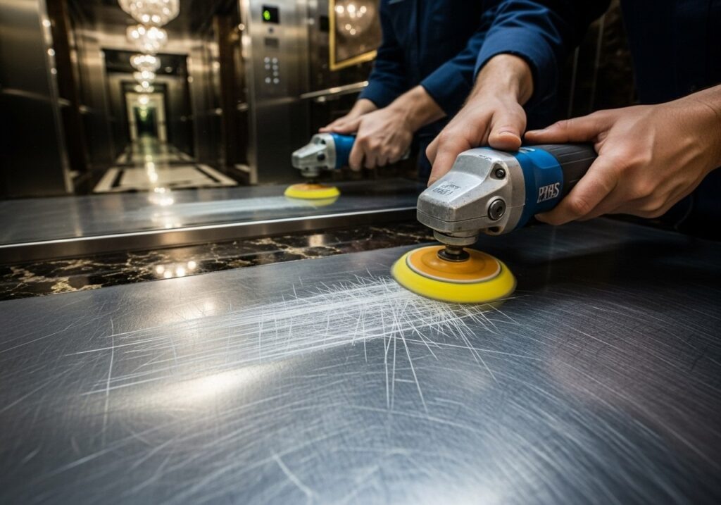 12 царапин на зеркальной панели, 8 потертостей на стальной обшивке и глубокие борозды на дверях — типичный «портрет» лифта после переезда арендаторов в бизнес-центре класса А. Стоимость полной замены панелей — от 200 000 рублей и две недели простоя. Но есть способ вернуть первоначальный вид без замены и за один день.