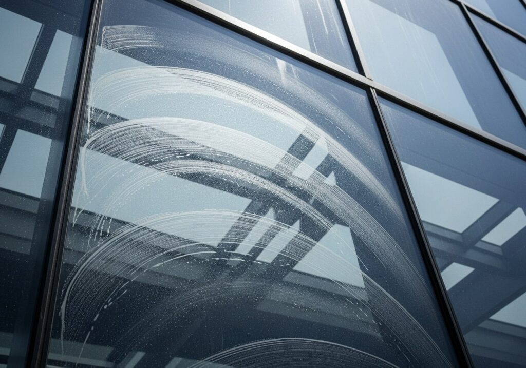 Нас пригласили как экспертов по работе со стеклом. После диагностики выяснили: проблема в сочетании нескольких факторов — остатки строительного раствора на стекле, жесткая вода при мойке и неподходящие моющие средства.