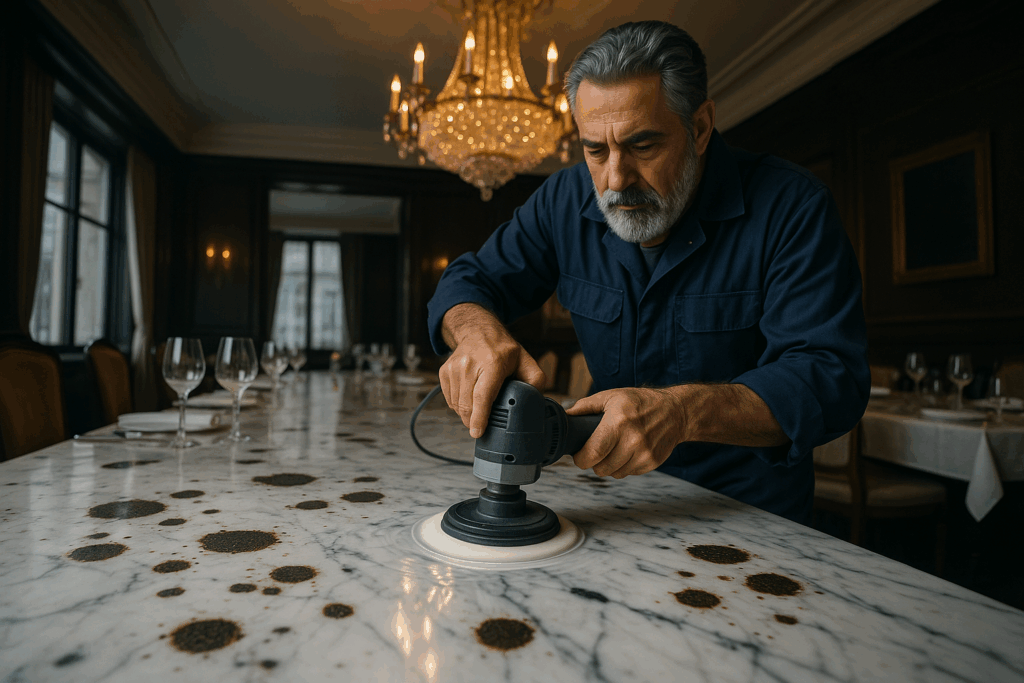 🔬 ИЗ ПРАКТИКИ: Ресторан в центре Москвы заключил договор на ежеквартальное обслуживание мраморных столешниц. За три года эксплуатации не потребовалось ни одной серьезной реставрации, что сэкономило владельцам более 450 000 рублей.