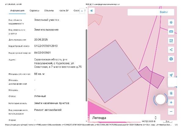 Название: Земельный участок, расположенный по адресу: Саратовская область, Новоузенский район, с.Куриловка, ул.Советская, в 7 м юго-восточнее д. 75; кадастровый номер 64:22:013801:2843; площадью 86 кв.м Канал: Госземля Саратовская область Область: - Район: - Населенный пункт: - Локация: Смотреть на карте ВРИ: Ремонт автомобилей Кадастровый номер: 64:22:013801:2843 Кадастровая стоимость: 16747.64 Вид сделки: Аренда Площадь: 86 м² Начальная цена: 1400.00 руб. Дата завершения: 14.09.2025 Подробнее: ГИС ТОРГИ #госземля #земляотгосударства #земля #земельныйучасток #земельныеторги #торги #аукцион #арендаземли #аренда #саратовскаяобласть