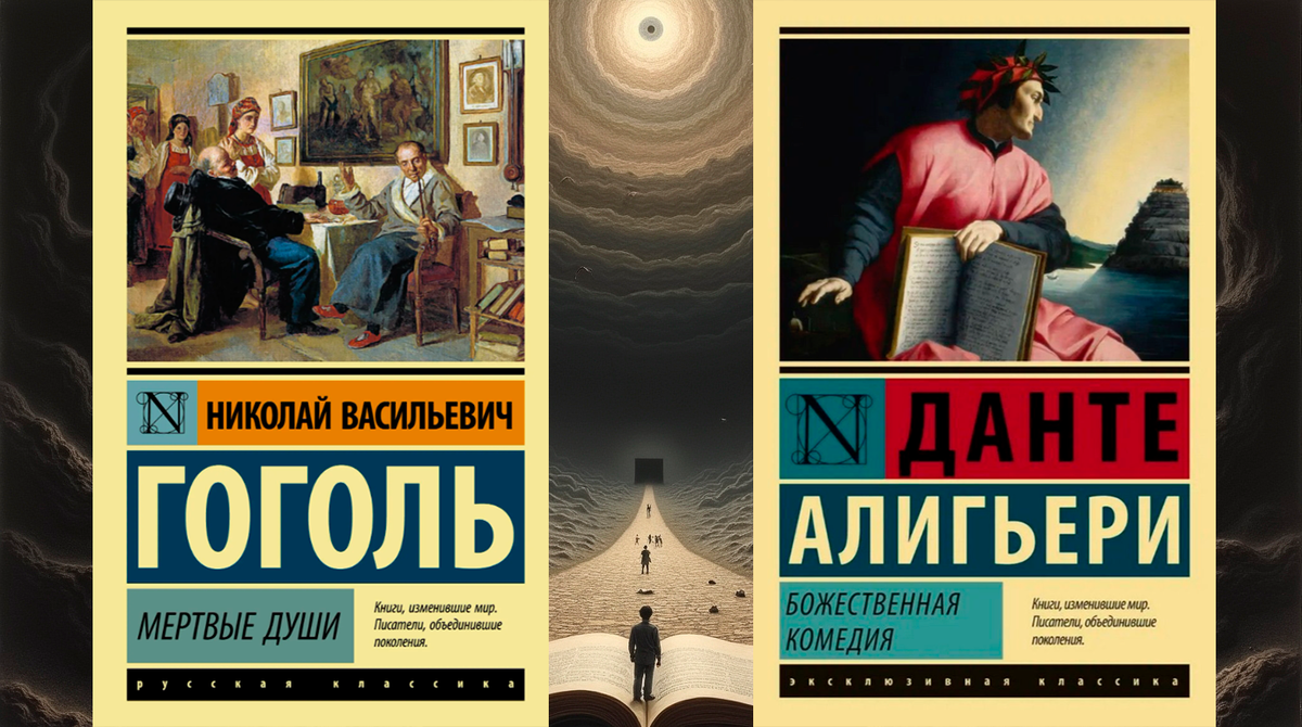 Представьте, что у вас есть секретный ключ, который превращает знакомый сюжет в грандиозное мистическое путешествие. Для «Мёртвых душ» таким ключом является «Божественная комедия» Данте. Знание этой связи включает режим «турбо» для восприятия Гоголя. Вы начинаете видеть не просто сатиру на чиновников, а вселенскую притчу о пути человеческой души. Давайте разберемся, как это работает. Гоголь задумывал «Мёртвые души» как произведение в трёх томах — точь-в-точь как три части «Божественной комедии»: Увы, третий том был сожжён, а второй недоработан. Но именно первый том, построенный по законам «Ада», мы и можем разбирать через призму Данте. У Данте есть проводник — мудрый Вергилий, который ведёт его по кругам ада. А сам Данте — это грешная душа, которая учится на увиденном. У Гоголя Чичиков совмещает обе роли. Каждый визит Чичикова — это нисхождение в новый круг духовной дег
