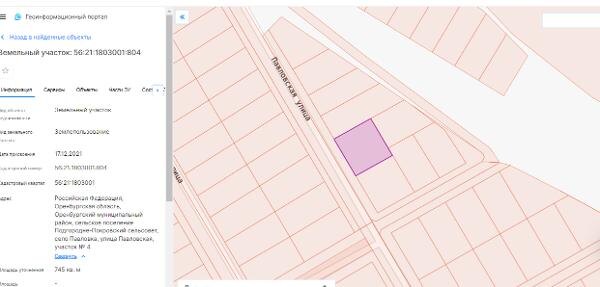 Название: земельный участок общей площадью 745 кв.м, кадастровый номер 56:21:1803001:804, разрешенное использование – для индивидуального
