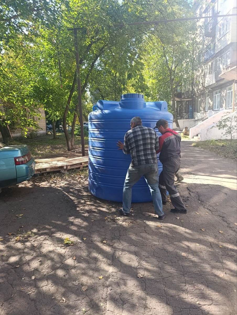 ☑️Установка ёмкостей для воды Ёмкость установили по адресу: 📍г. Енакиево: 💧ул. Блюхера, 128. Это позволит жителям обеспечить свои первоочередные потребности в воде. Работу продолжаем, будем и дальше предпринимать меры, чтобы улучшить ситуацию с водоснабжением.