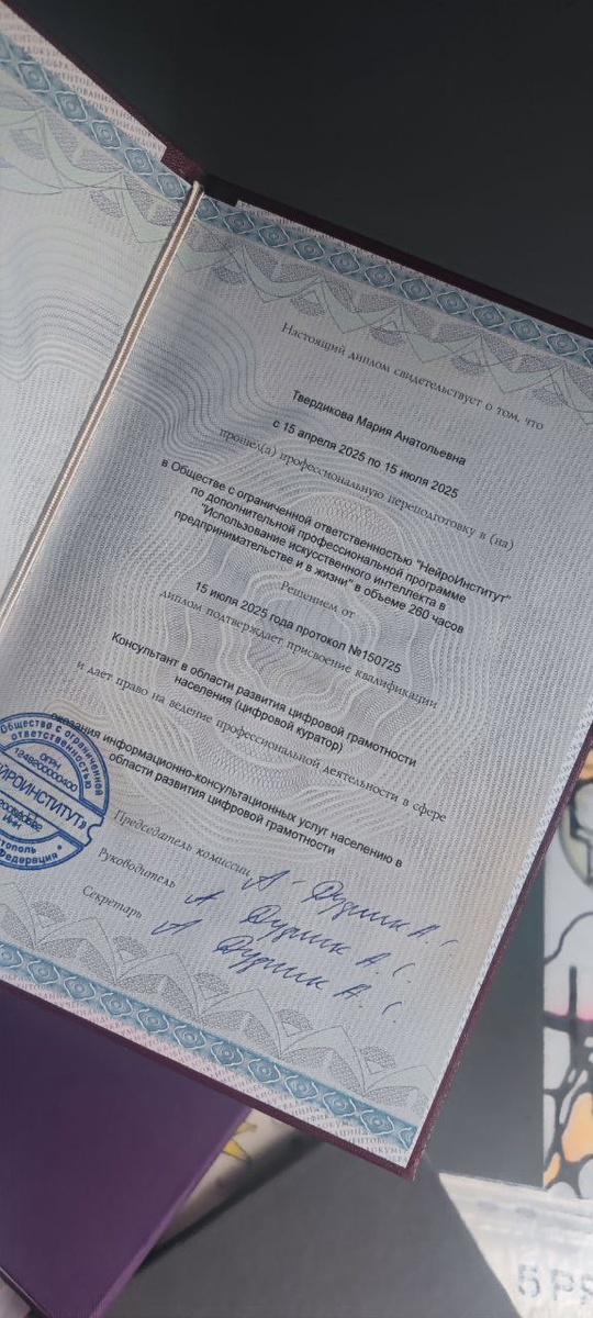Хочу искренне поблагодарить команду и всех причастных за обучение! 🌿 За эти месяцы я получила ценные знания в сфере искусственного интеллекта, расширила свой профессиональный кругозор и поняла, как эти инструменты помогают мне не только в медицинской и коучинговой практике, но и в предпринимательской деятельности. Это обучение стало для меня настоящим шагом вперёд — и в цифровой грамотности, и в осознанном использовании технологий в жизни. Рутинные задачи решаются моментально👌 Суперрезультаты которые теперь доступны гораздо быстрее!🔥🔥🔥 Спасибо за опыт и поддержку! 🙏