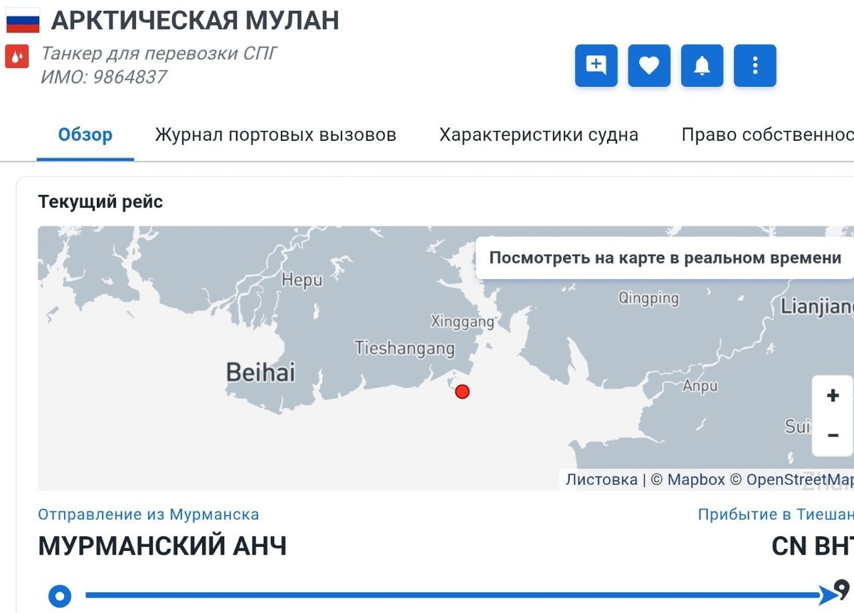 Танкер Arctic Mulan с газом проекта «Арктик СПГ 2», находящегося под санкциями США, впервые пришвартовался у китайского терминала в Бэйхае, пишет Bloomberg. Очень пристально наблюдают за каждым шагом. Наверно, можно бесконечно смотреть на то, как работают другие и как санкционные углеводороды расходятся по миру
