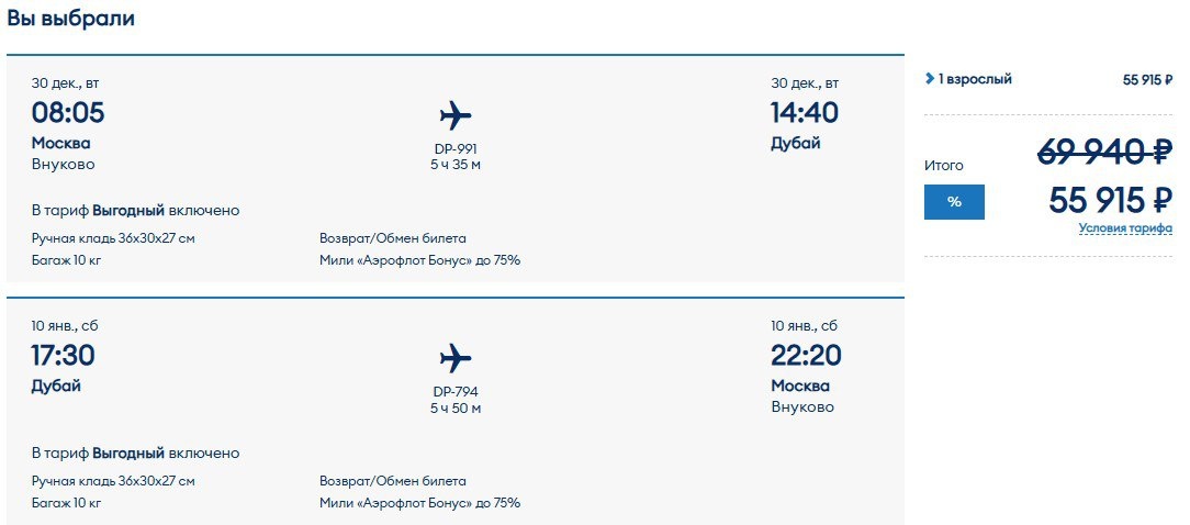 В ответ на пост «Победа», разочаровавшая пассажиров на июльской распродаже отсутствием реальных скидок на новогодние даты, похоже, решила исправиться. На стартовавшей сегодня акции появились, например, билеты Москва – Дубай 30 декабря туда, 10 января – обратно за 55,9 тыс. руб., причем с багажом. А из российской столицы в Анталью – примерно за ту же цену – 55,3 тыс. руб. Наличие и тарифы мы проверяли в 11:30. Подробнее читайте на ТурДоме. @tourdom