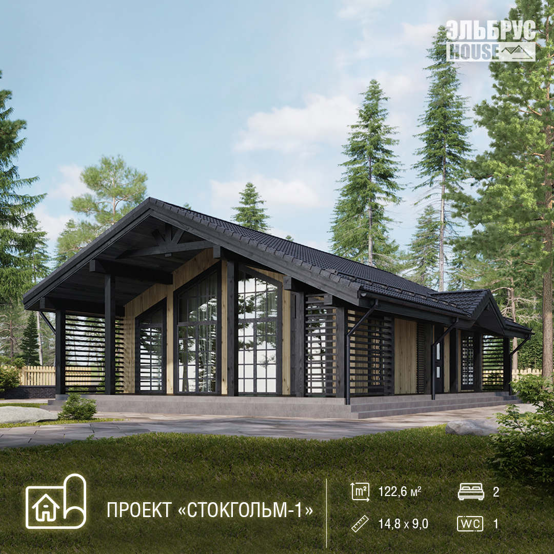 Каркасные дома сегодня уверенно занимают лидирующие позиции на рынке малоэтажного строительства. Всё больше семей выбирают именно этот формат загородного жилья благодаря его энергоэффективности, современному дизайну и доступной цене. Компания Эльбрус House предлагает строительство каркасных домов в Нижнем Новгороде и области. У нас вы можете построить каркасный дом под ключ по готовым или индивидуальным проектам, а также выбрать оптимальное решение для семьи с учётом бюджета. Мы реализуем современные и надёжные проекты каркасных домов, обеспечивая прозрачные цены и полный цикл работ — от фундамента до отделки. Один из самых популярных вариантов — проект каркасного дома «Стокгольм-1» площадью 122,6 м². Этот одноэтажный дом продуман до мелочей и отлично подойдёт для постоянного проживания. Внутри разместились просторная кухня-гостиная, две большие спальни, санузел, техническое помещение, холл, тамбур и уютная терраса площадью 37,2 м². Такая планировка делает дом комфортным как для семьи