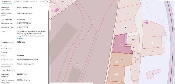 Название: Земельный участок с кадастровым номером 51:28:0100004:265, площадью 1000 кв.м., категория земель – земли населенных пунктов