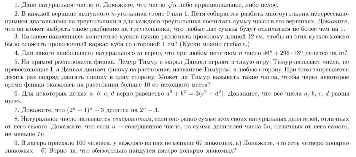 Ох, давненько я размышляю над этим утверждением, которое даже не я сам придумал. Лет десять назад я имел беседу с ровесником, который отучился в лучшей школе страны и посещал кружок математического центра, а потом и сам в нём вёл кружки - и мы пришли к выводу, что школьная программа у нас в стране рассчитана не на "среднего ученика", как это постулируется, а именно на умственно отсталого. Иначе как объяснить, что уравнения и отрицательные числа появляются только в 6 классе, алгебраические дроби - только в 7 (и то не везде), квадратичная функция и квадратное уравнение - в 8, окружность - в 9, а логарифмы и честная тригонометрия - и вовсе в 10? Вот листочек с задачами из матцентра: Как думаете, какой это класс? А я вам скажу - пятый. Летний лагерь после пятого точнее. И большинство детей решает эти задачи спокойно. Нет, вовсе не только в самой первой группе будущих победителей Всеросса и медалистов Межнара. Пока родители обычных школьников из дворовой школе жалуются на "слишком сложную"