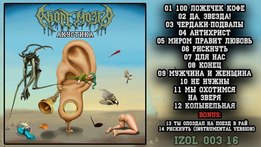 Над акустическим альбомом улан-удэнская группа «Аборт мозга» начала работу еще в 2015-2018 годах. За аранжировки и гитарные партии отвечал бывший участник томских «Духов цеха» Александр «Мангол» Осокин. Когда музыкальные подкладки были практически готовы, вокалистка команды Сабрина Амо (Наталья Семенова) охладела к идее релиза и не стала исполнять вокальные партии — за исключением песни «Антихрист», выпущенной ранее на CD «Изоляцией» отдельным синглом. Но к 2023 году работа была доведена до ума, и альбом, наконец, увидел свет. Акустический проект — серьезная проверка на прочность для любой тяжелой группы. Запросто может получиться так, что от песен, звучавших в оригинале драйвово и сочно, останутся в камерном варианте лишь рожки да ножки с никакущими мелодиями и невыразительным вокалом. Но в случае с «Абортом мозга» заведомо было понятно, что такого не произойдет. Ведь Сабрина Амо воспитывалась не только на лучших рок-образцах, но и на классической музыке, а автор части музыкального ма