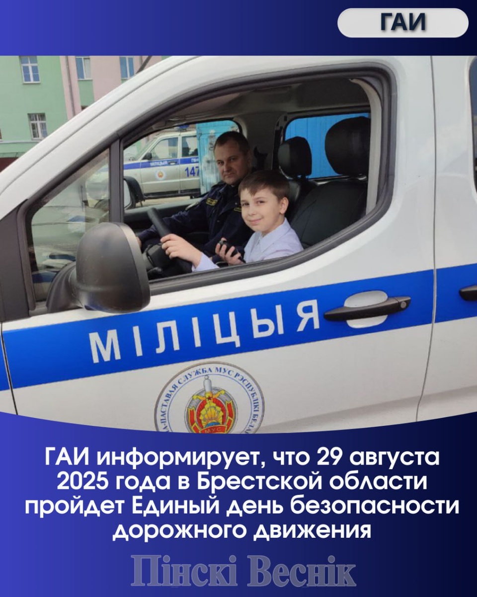 ✅ГАИ информирует, что 29 августа 2025 года в Брестской области пройдет Единый день безопасности дорожного движения под девизом «Безопасная