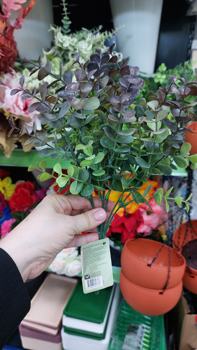 У входа, в отделе Сад и огород выставили - Ветку декоративную, 37 см, были в продаже, снова привезли. Три цвета в наличии, купить можно за 130 рублей.