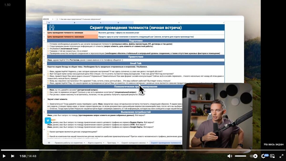 «Не нравится текущий скрипт, нет продаж на большие чеки» Сфера: привлечение клиентов из поисковых карт и отзовиков. Когда я открыл этот скрипт, мне он показался продуманным и вполне достойным вариантом. НО, как говорится, детали решают. Сразу стало понятно, почему "нет продаж на большие чеки". Вчера в течение дня посмотрел большую часть скриптов, которые вы прислали – нашел общие ошибки и записал разбор + прокачку с ИИ наиболее интересных. Все разборы доступны бесплатно в боте ПРОКАЧКИ, выбирайте актуальные для вас (самые свежие – под номером 4 и 5).