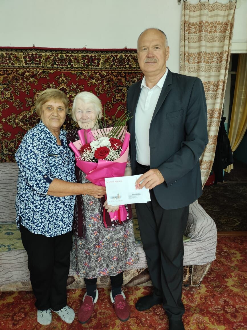Трудолюбие - основа ее характера 28 августа отметила 95-летний юбилей старейшая жительница села Родино Шипуновского района - Татьяна Александровна Болгова. Она очаровывает каждого, кто с ней общается, своим добродушием, трудолюбием и вниманием. За свои трудовые годы Татьяна Александровна заслужила звания «Труженик тыла» и «Ветеран труда». Поздравить ее со столь знаменательным событием приехал начальник управления социальной защиты населения по Шипуновскому району С.С. Плохих и председатель Совета ветеранов села О.И. Сычева. Татьяна Александровна всю трудовую жизнь отработала в сельском хозяйстве, трудилась в колхозе им.Гринько. В свободное время пела в хоре, участвовала в художественной самодеятельности, плясала. Очень любила собирать грибы и ягоды. Долгие годы являлась подписчиком газеты «Степная новь». Поздравляем Татьяну Александровну с юбилеем и желаем здоровья, благополучия и оптимизма в жизни!Сс... Ссылка на публикацию #Шипуновский #район