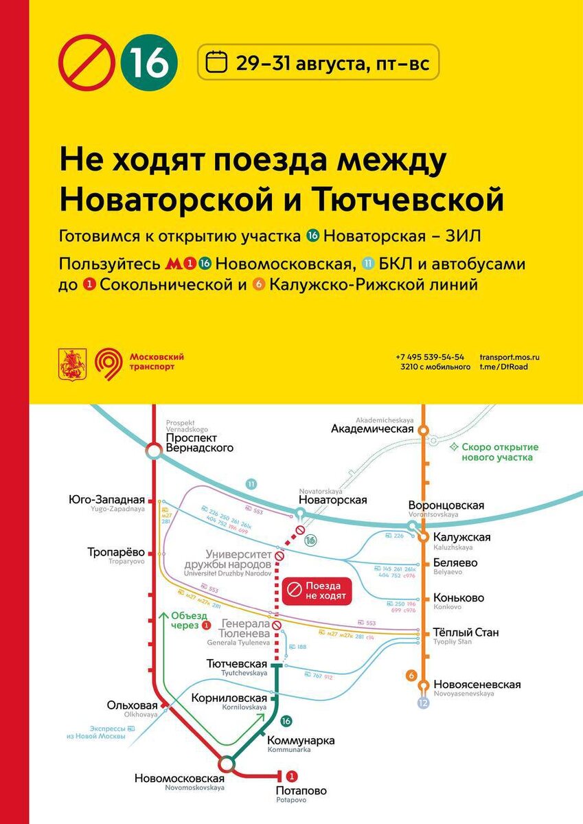 🚧 Троицкая линия: «Тютчевская — Новаторская» закроют 29–31 августа