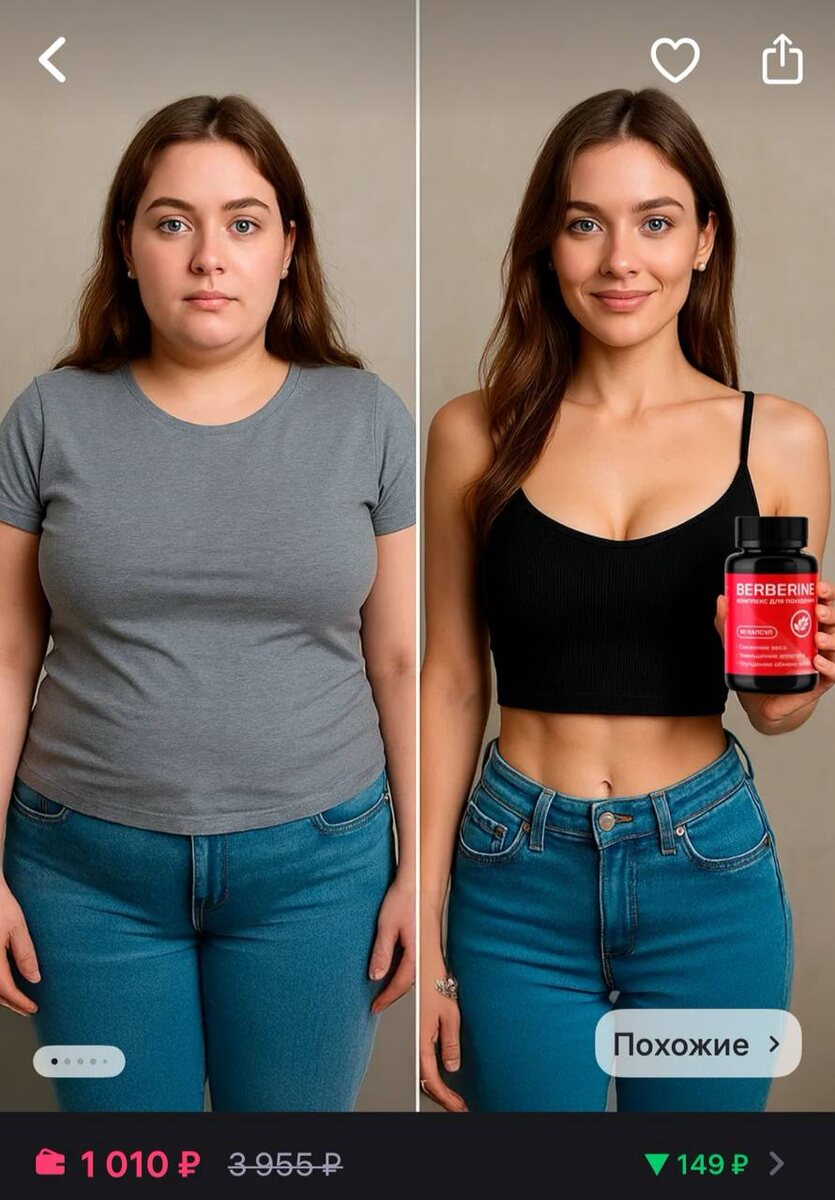 До / после При выборе любого уходового, косметического или лекарственного средства хочется увидеть результат в действии. Вообще лично мне очень нравится смотреть на фотографии до/после. Например, до и после похудения, пластической операции, макияжа, любого другого преображения. На этом эффекте же построена целая передача — «Модный приговор», если кто-то такую помнит. Вместе с тем карточки на маркетплейсах превратились в насмешку над этой концепцией. Если раньше «до/после» рисовали в фотошопе, то теперь нагло используют даже изображения, созданные нейросетями.