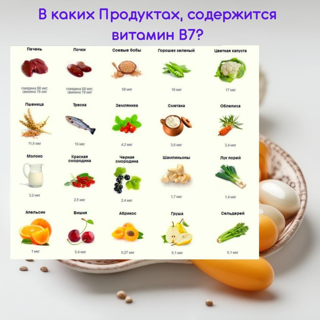 Чуть выше Вы посмотрели, какие продукты содержат наш Витамин. Итак, • Печень - 98 мкг • Треска - 10 мкг • Кукуруза - 21 мкг • Бобовые - 15-40 мкг • Арахис - 40 мкг • Пшеница - 10 мкг • Сметана - 3,6 мкг • Яичный желток - 30 мкг (в сыром белке содержится антинутриент авидин). Биотин устойчив к воздействию высоких температур. После кулинарной обработки продуктов, в них сохраняется до 80 % полезного нутриента. Но нужно быть внимательнее: Свет и вода разрушают витамин В7! ...Питание с умом, жизнь в радость🍀...