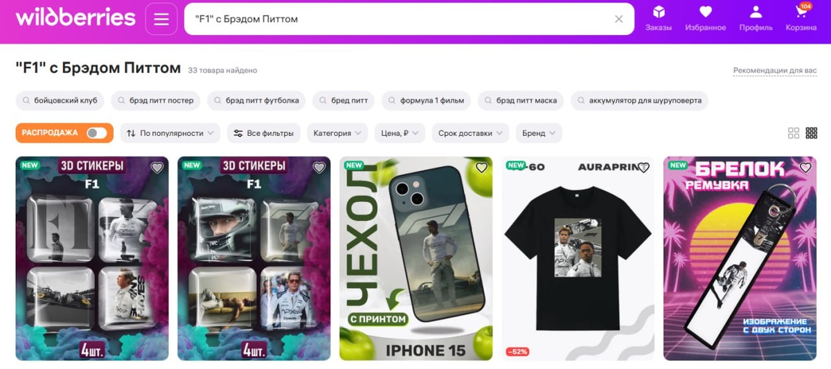 В России вырос спрос на элементы автоспортивной эстетики на фоне выхода фильма "F1" с Брэдом Питтом. Так, например, в период с 1 июля по 15 августа число заказов на гоночные куртки в винтажном стиле выросло на 88%, рассказали РИА Новости аналитики CDEK.Shopping. Число заказов кашемирового трикотажа Loro Piana и Brunello Cucinelli, в котором появлялся актер в фильме, выросло на 65%, а командных бейсболок - на 54%. Также в 1,5 раза вырос спрос на толстовки и футболки с автоспортивной символикой. А на Wildberries уже появились товары с красавчиком Брэдом Питтом.