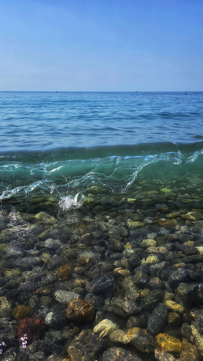 Море сегодня неплохое. Вдали от берега плавают стаи мелких медуз, местами мутно и мелкий мусор в виде палок. Всё это наблюдаемо с сапборда на расстоянии 30 метров от берега.
