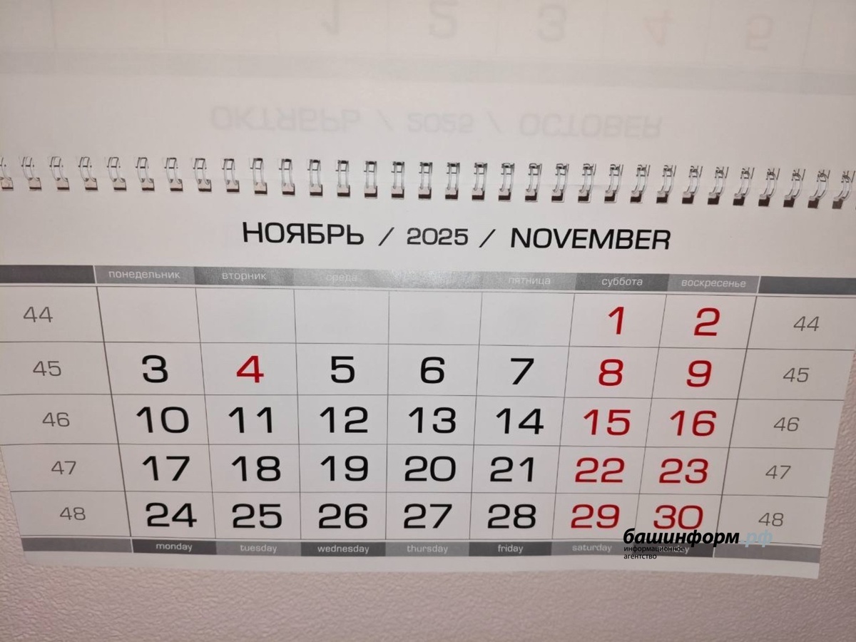 Жителей Башкирии в начале ноября ждет необычная рабочая неделя — всего три рабочих дня. Согласно постановлению Минтруда о переносе выходных в 2025 году, 4 ноября страна отмечает День народного единства. В результате, после рабочей субботы 1 ноября, выходными станут дни с 2 по 4 ноября (воскресенье — вторник). Дополнительно выходными будут 8 и 9 ноября (суббота и воскресенье), а с 5 по 7 ноября предстоит работать.