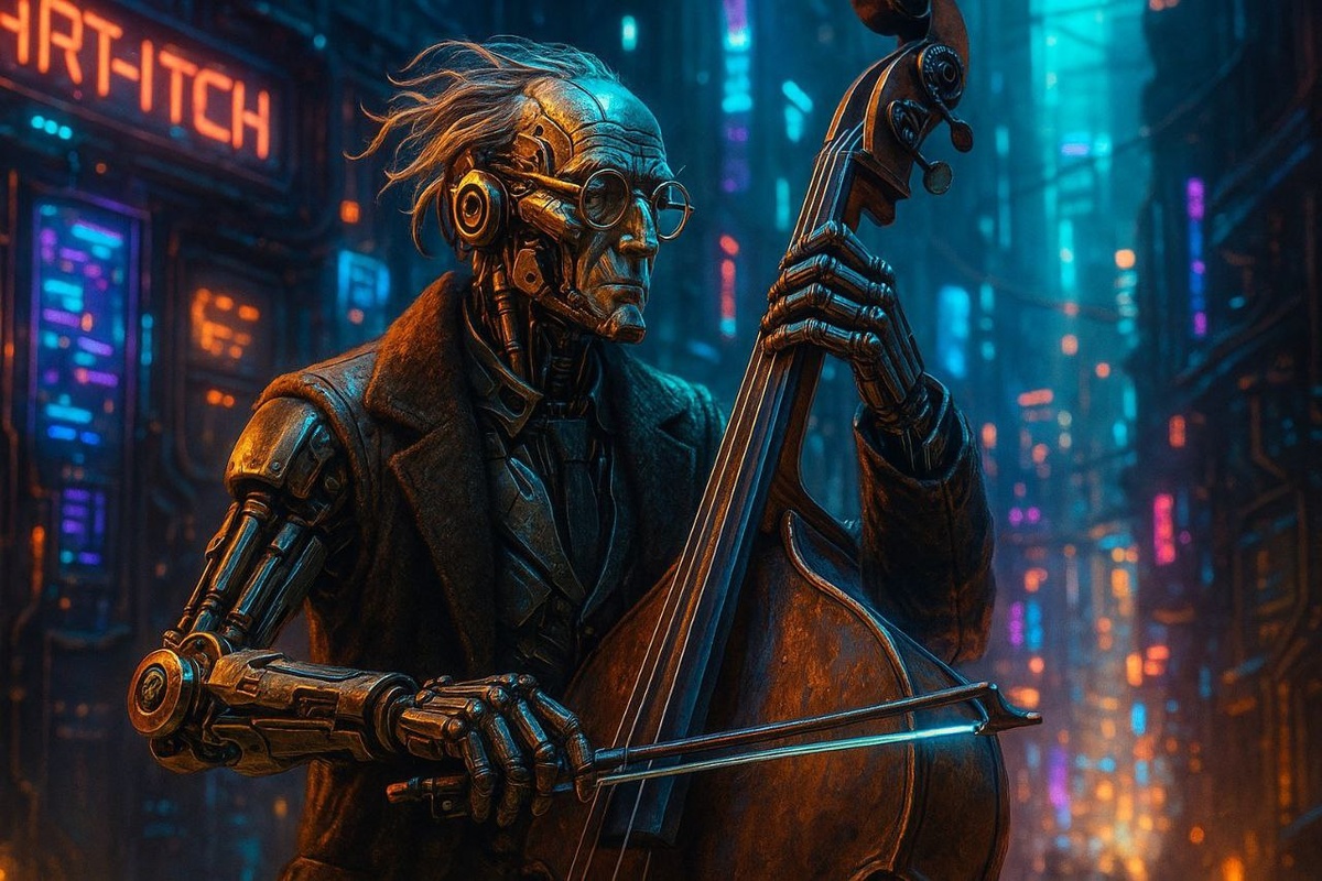 А вы знали, что Сберовский GigaChat теперь умеет генерить музыку? И не просто музыку, а даже песни и midi-партитуры? Не зря наши школьники выигрывают олимпиады по ИИ ❤️ Промт для генерации такой картинки в ChatGPT: Сгенерь картинку на которой человекоподобный робот играет на контробасе. Соотношение сторон картинки 16:9. Стиль киберпанк