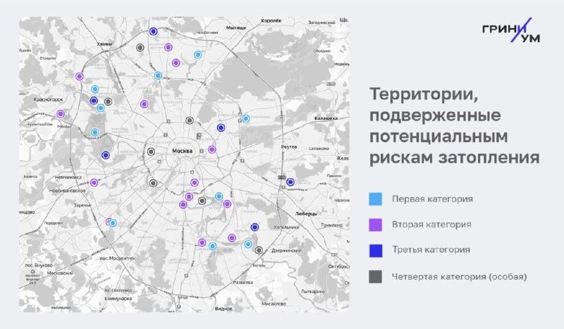 Интернет-платформа об экологии «Гриниум» составила карту потенциальных затоплений улиц Москвы во время летних ливней. Районы разделили на категории риска: 🔵 Высокая вероятность — пойменные участки рек (Тушинское аэрополе, Братеевская пойма, Серебряный Бор) и окрестности мостов над зауженными коллекторами (Чертановка, Лихоборка, Очаковка, Сходня, Неглинка). 🔵 Средняя — низины и гидротехнические объекты (Даниловский, Печатники, Мякинино-Парк, Западные Марьинские пруды). 🔵 Низкая — пойменные низменности по рекам Чурилиха и Хапиловка, недавно застроенные территории Тушинского аэрополя и Мневниковской поймы. 🔵 Особая категория — места, где официально угроз нет, но исторические данные говорят об обратном (Клязьминская улица, проспект Мира). https://bg.ru/bg/city/city-news/29212-msc-rain ❤ «Большой Город»