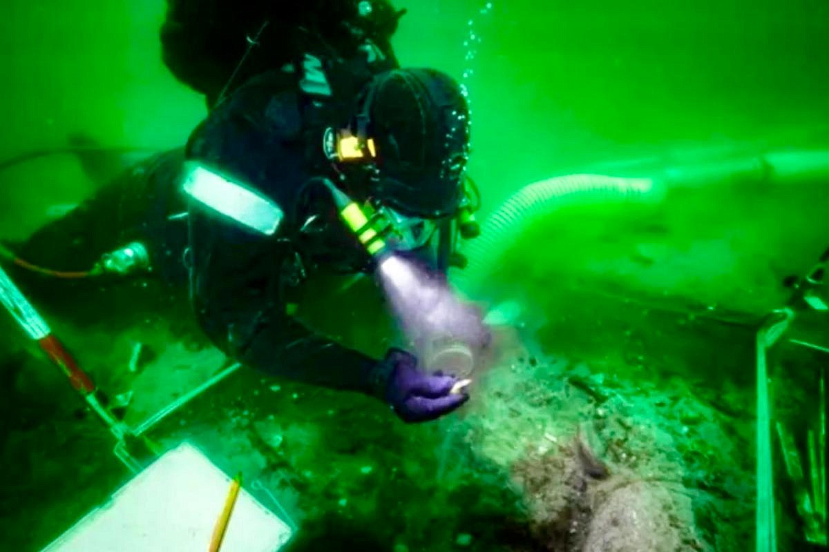 Первая разведка дайверов принесла набор характерных находок — костные остатки животных, каменные орудия, наконечники стрел и обработанную древесину. Руководитель подводных