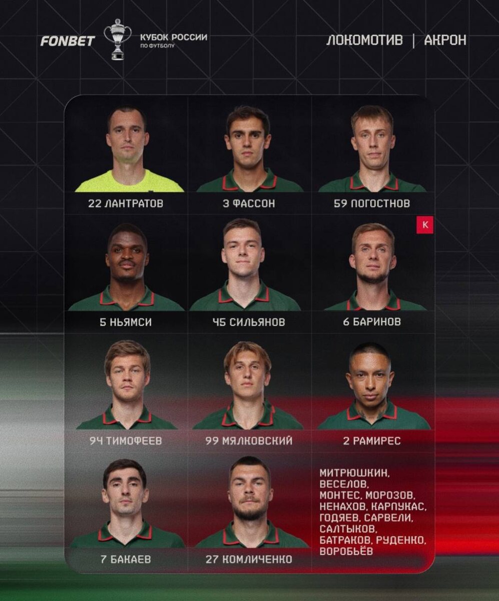 И это состав родной команды. Локомотииииииив Москва! Но что - то он совсем смешанный. Как по мне, после такой плюхи от Ростова надо уверенность поддержать, но ММГ виднее, наверное.