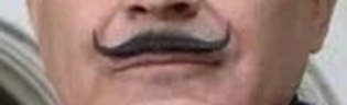 Что довольно странно для рассказа об СВО. Смотрите сами: «в первой молодости» (в смысле – вторая молодость наступила у влюбившегося дяди в возрасте «пятидесяти плюс»), «по поводу коричневого тоже высказывался» (г-но, в смысле, - речь о цветах, в какие бойцы выкрашивали свои автоматы), «тактикульно» (это «когда человека сразу можно отправлять на выставку «Армия-2023»» - выпендрёж, в смысле), «тактильно – это когда щупаешь пальчиками (ротный шутник по этому поводу… ну да неважно)», «военный человек должен был выглядеть так, чтобы невоенные люди завидовали. А антивоенные в обморок падали», «язвительные усики, как у Пуаро». Для тех, кто забыл или не знает, что это за усики, ставлю их скан. Издатель, счёл, наверно, эту шуточку повествователя неуместной для патриотической книги и распорядился рядом поставить благопристойный портрет российского воина. Продолжать примеры хохмочек? «…новообретённый ветреник», «По ходу, дело за пень задело!» (издевка ротного остряка над, наверно, любовной неудач