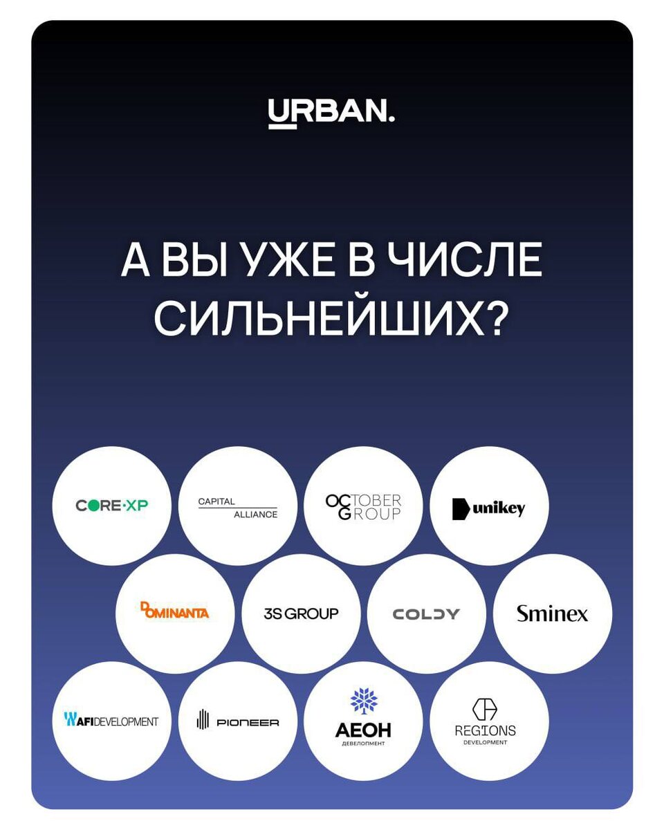 Сегодня знакомим с участниками 17-й Московской премии URBAN ЧАСТЬ 1. Ведущие девелоперы страны — Донстрой, Sminex, STONE, PIONEER, Level Group, DOGMA, ГК ФСК, AFI Development — уже с нами. Если вы создаете проекты уровня ТОП-лиги, значит, ваше место — среди победителей URBAN Awards. Почему это важно? 🟢80+ экспертов — практики рынка: девелоперы, архитекторы, финансисты, топ-менеджеры и СМИ — оценят ваш продукт и дадут обратную связь. 🟢Престиж и признание — победа подтвердит статус лидера. 26 ноября Lapino Hall (Москва) Это не просто церемония — это точка роста для сильнейших. Хотите увидеть ваш проект в следующих частях? Подать заявку