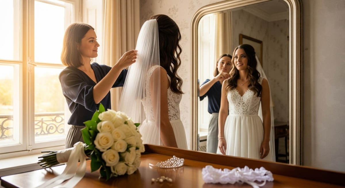 Утром наш дом превратился в улей. Парикмахер, визажист, фотограф, подружки — все суетились, что-то обсуждали, давали советы. А я сидела перед зеркалом и чувствовала странную лёгкость. Будто тяжёлый камень с души свалился.