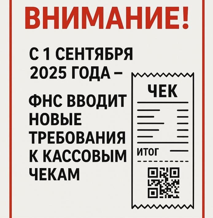 🚨 ВНИМАНИЕ, БИЗНЕС! МЕНЯЮТСЯ ПРАВИЛА ИГРЫ ДЛЯ КАСС С 1 СЕНТЯБРЯ 2025 ГОДА! С 1 сентября вступает в силу приказ ФНС с новыми требованиями к чекам. Рассказываем коротко и без воды, что ждёт всех, кто работает с онлайн-кассами. ⚙️ Что вообще происходит? ФНС обновила правила для всех, у кого есть касса (ИП и ООО). Теперь строже к реквизитам в чеках, особенно для онлайн-продаж, и к качеству самой бумаги. ⬇️ Главные изменения: 1. Онлайн-продажи (самое важное!): Теперь в электронном чеке обязательно нужно указывать: ✅ Тег 1125 — Ставим «1» (признак, что это интернет-платёж). ✅ Тег 1187 — Вписываем адрес сайта, где купили товар. ✅ Тег 1008 — Указываем email или телефон покупателя. 2. Новые стандарты для бумажных чеков: ➖ Высота текста — не меньше 2 мм. ➖ Расстояние между строками — не меньше 0,5 мм. ➖ QR-код — минимум 20×20 мм, контрастность от 40%. 3. Чеки на экране (например, смартфона или планшета): 📱 QR-код тоже должен быть не менее 20×20 мм. 💡 Яркость экрана — не ниже 250 кд/м²