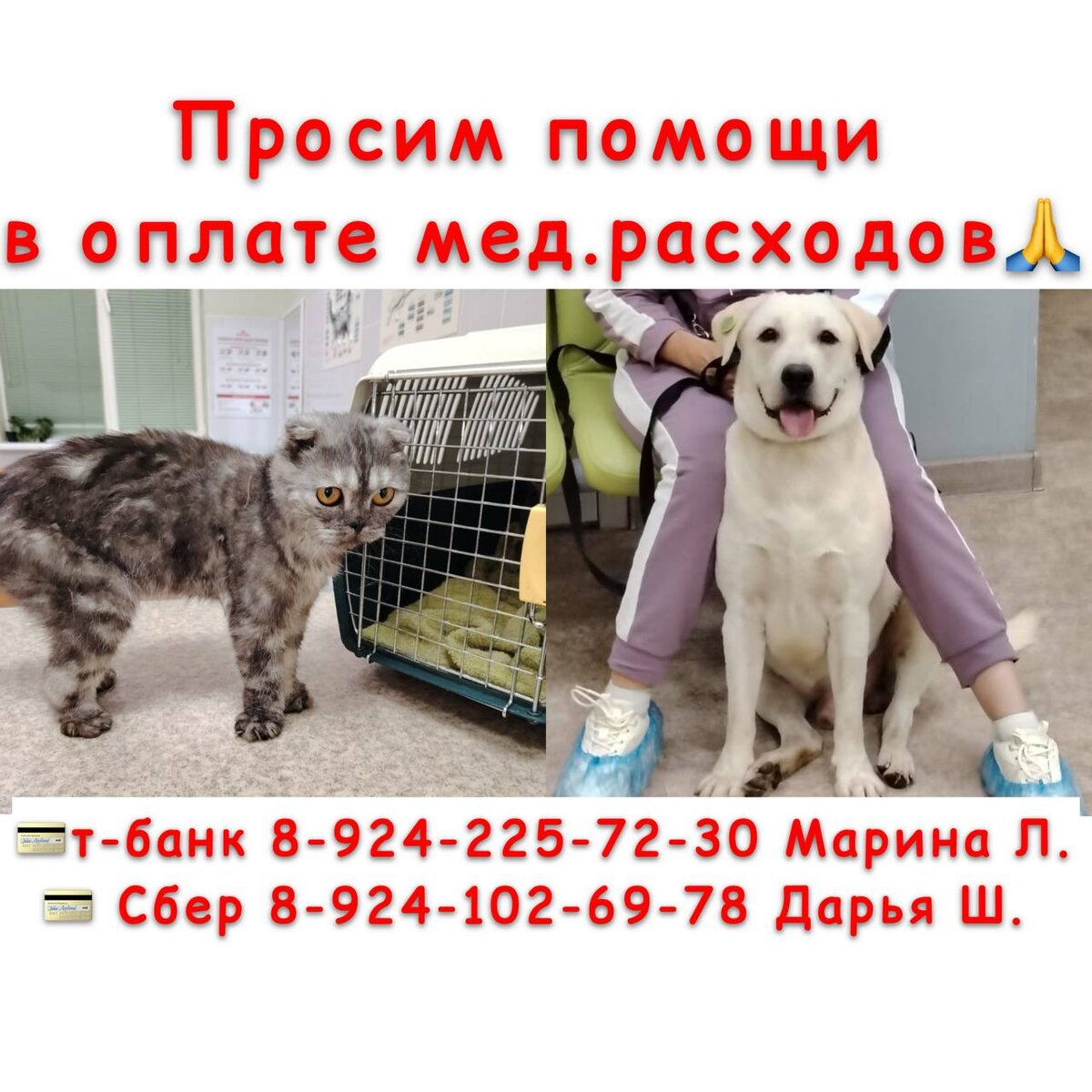 СБОР СРЕДСТВ Т-Банк 8-924-225-72-30 Марина Л. Сбер 8-924-102-69-78 Дарья Ш. Пометка благотворительность клиника Помогите нам покрыть мед.расходы 🙏 Арчи - лабрадор. Его предал человек. Сначала звонил мужчина, просил забрать, а вскоре сказал, что уже кому-то пристроил парня. вечером того же дня волонтёр нашла Арчи на улице забрызганного перцовкой 😒 Сегодня он был на приеме у врача по поводу кашля. Ему ввели препарат мелоксивет. Теперь пару дней наблюдаем, если не пройдет кашель, то делаем ФГДС. Возможно инородное тело 😭 И наш новенький - которебёнок (всего 8 месяцев малышу). Он только-только попал в приют. Его особенные лапки - результат недобросовестного разведения, скрещивания шотландских вислоухих кошек. Ему назначены обезболивающие препараты, и, возможно, потребуется консультация ортопеда-невролога. Даже если вам кажется, что 100 рублей - это капля в море, поверьте, для нас это огромная помощь! Вместе эти небольшие суммы складываются в возможность оплатить лечение, обследования