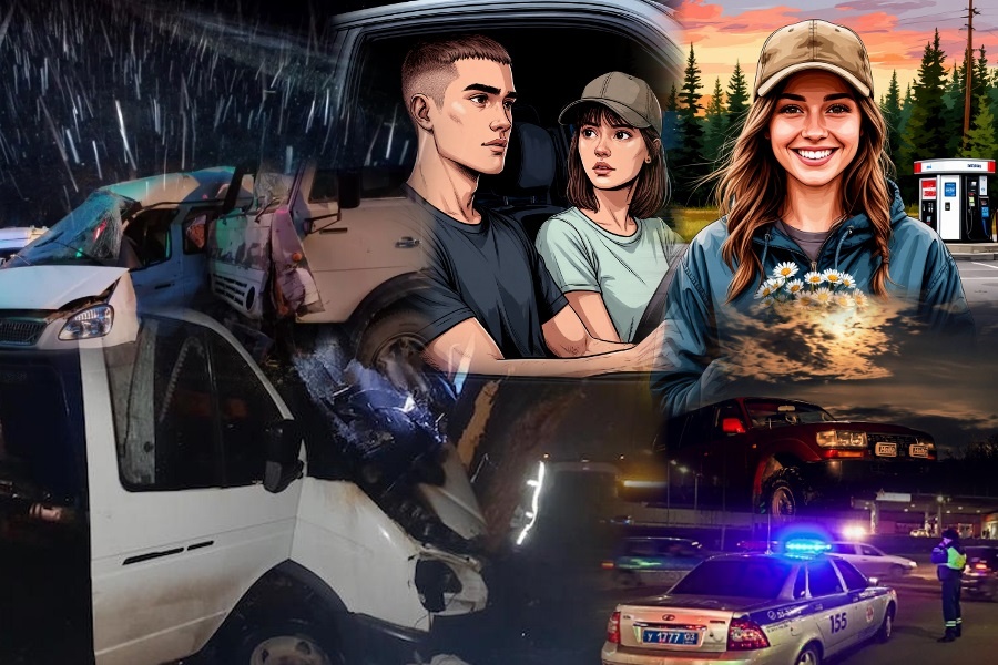 -Точно не знаю, дождь резко пошёл. Я за КамАЗом шёл, как чухал, далековато от него держался. А он по тормозам резко дал и по обочине попёр, ажна камни полетели, чутка не спрыгнул! А потом хрясь! «Газель» в него чирком! А вторая заюзила и кувырк! Только брызги от ней полетели!